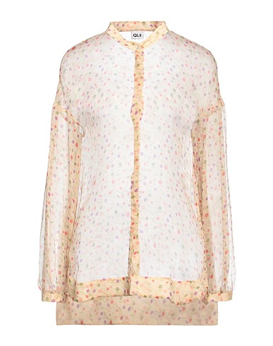 shirt, crepe, polka-dot, no appliqués, mandarin collar, long sleeves, buttoned cuffs, button fastenings