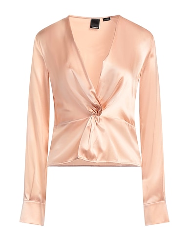 top, satin, plain colour, no appliqués, draped neckline, long sleeves, buttoned cuffs, stretch