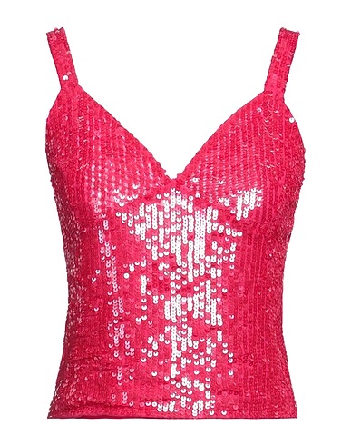 top, tulle, plain colour with appliqués, sequins, deep neckline, sleeveless, stretch