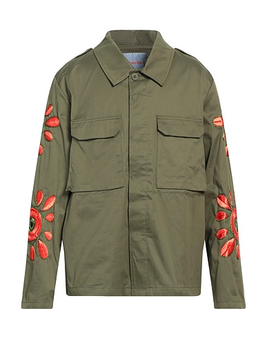 woven, embroidered, embellished, plain colour with appliqués, classic collar, long sleeves, unlined, button fastenings, multipockets, overshirt