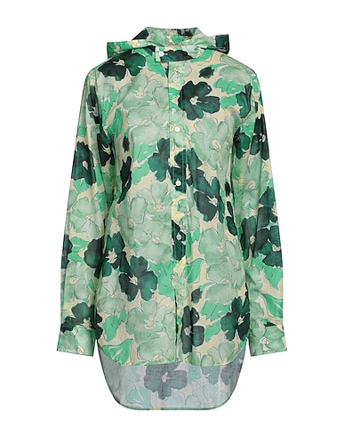 shirt, woven, floral-print, no appliqués, hooded, long sleeves, buttoned cuffs, button fastenings