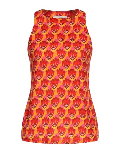synthetic jersey, no appliqués, floral-print, crewneck, sleeveless, no pockets, stretch, top