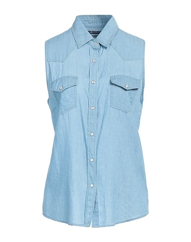 denim, no appliqués, plain colour, light wash, classic collar, sleeveless, snap fastenings, two breast pockets
