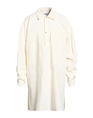 long shirt, linen, plain colour, embroidered logo, classic collar, long sleeves, snap-fastening cuffs, snap fastenings, slit pockets, dry clean, do not bleach, do not tumble dry