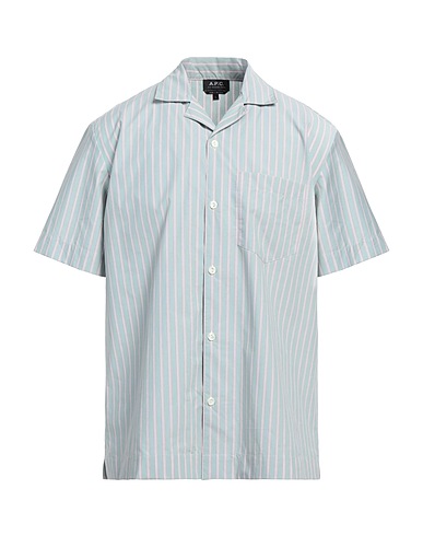 woven, no appliqués, striped, lapel collar, short sleeves, button fastenings, one chest pocket, dry clean, do not bleach, do not tumble dry, regular-fit shirt