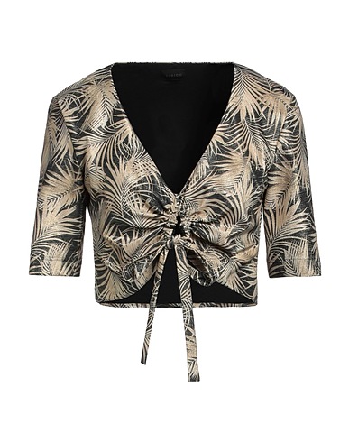 synthetic jersey, gathered, floral-print, v-neck, short sleeves, fully lined, self-tie closure, no pockets, stretch, crop tee