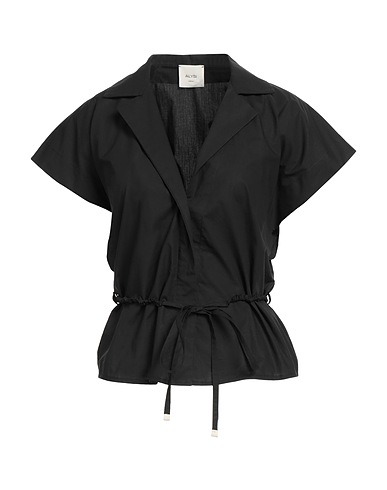 shirt, woven, plain colour, belt, lapel collar, short sleeves, concealed button fastenings, machine wash or dry clean, do not bleach, do not tumble dry