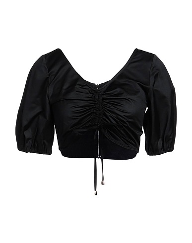 crop top, satin, plain colour, gathered, scoop neckline, short sleeves, zip fastening, dry clean, do not bleach, do not tumble dry