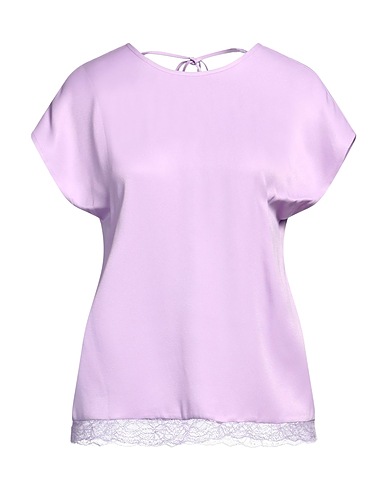 top, satin, plain colour, brand logo, lace trims, crewneck, short sleeves, dry clean, do not bleach, do not tumble dry