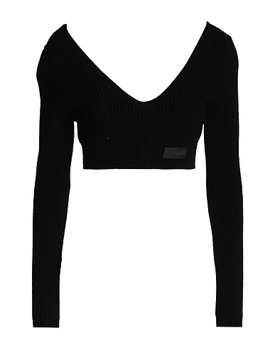 wool, medium-weight knit, brand logo, plain colour with appliqués, deep neckline, long sleeves, without pockets, contains non-textile parts of animal origin, dry clean, do not bleach, do not tumble dry, crop top