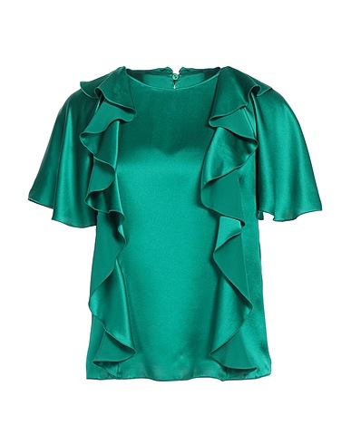 ruched top, satin, ruffles, plain colour, crewneck, short sleeves, 1 button, without pockets, dry clean, do not bleach, do not tumble dry