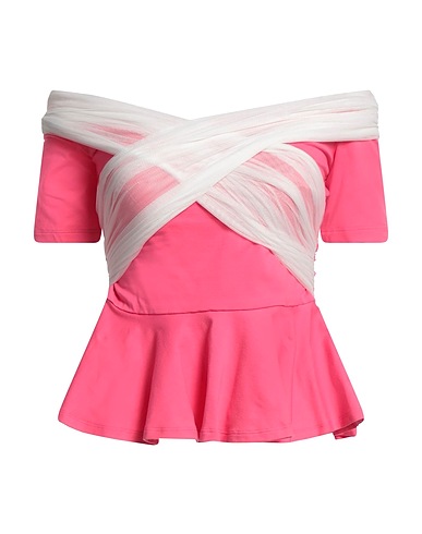 off-the-shoulder top, jersey, tulle, no appliqués, two-tone, short sleeves, zip fastening, without pockets, stretch, hand wash or dry clean, do not bleach, do not tumble dry