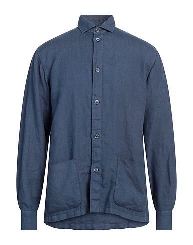overshirt, linen, plain colour, no appliqués, classic collar, long sleeves, buttoned cuffs, button fastenings, pockets, contains non-textile parts of animal origin, machine wash or dry clean, do not bleach, do not tumble dry, this brand runs small