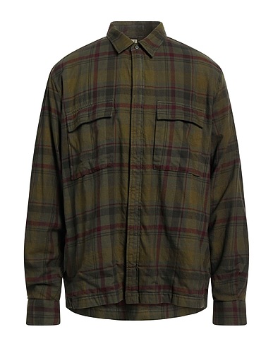 overshirt, flannel, tartan pattern, brand logo, classic collar, long sleeves, fully lined, button fastenings, two chest pockets, machine wash, do not bleach, do not tumble dry, this brand runs small
