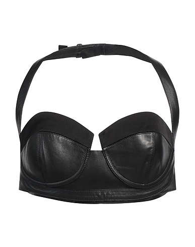 crop top, leather, satin, plain colour, no appliqués, sweetheart neckline, sleeveless, fully lined, hook fastenings, contains non-textile parts of animal origin, do not wash, do not bleach, do not tumble dry, do not iron