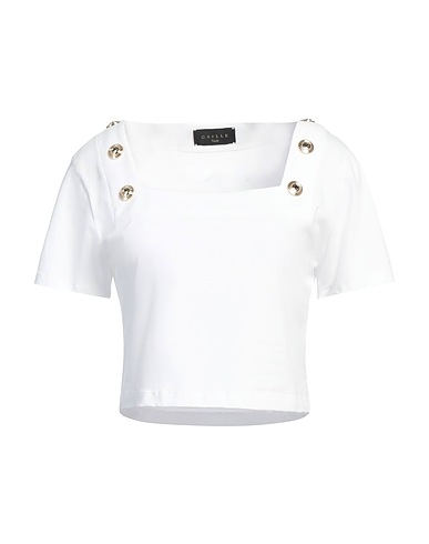 crop top, jersey, plain colour with appliqués, brand logo, button-embellished, square neckline, short sleeves, stretch, hand wash or dry clean, do not bleach, do not tumble dry