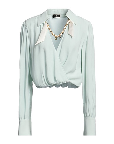 top, crepe, plain colour with appliqués, wrap-effect, detachable application, deep neckline, long sleeves, shoulder pads, buttoned cuffs, zip fastening, elasticated hem, dry clean, do not bleach, do not tumble dry, this brand runs small