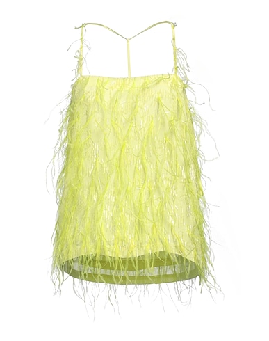 top, crepe, plain colour with appliqués, feathers, square neckline, sleeveless, contains non-textile parts of animal origin, hand wash or dry clean, do not bleach, do not tumble dry, this brand runs large