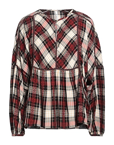 top, woven, tartan pattern, no appliqués, crewneck, long sleeves, 1 button, machine wash, do not bleach, do not tumble dry
