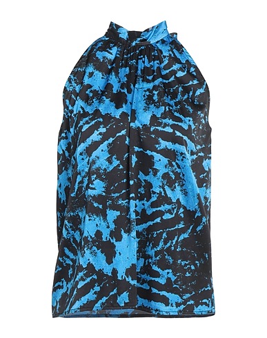 top, satin, two-tone, no appliqués, halterneck, sleeveless, stretch, machine wash or dry clean, do not bleach, do not tumble dry