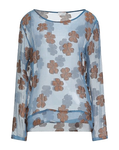 top, crepe, plain colour with appliqués, embroidered, scoop neckline, long sleeves, unlined, dry clean, do not bleach, do not tumble dry, this brand runs large