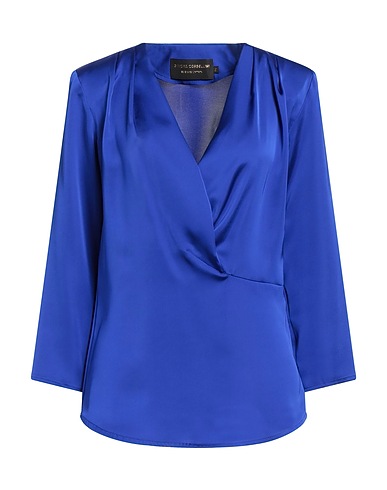 top, satin, plain colour, no appliqués, deep neckline, long sleeves, machine wash, do not tumble dry