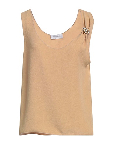 top, crepe, plain colour with appliqués, crystals, crewneck, sleeveless, machine wash or dry clean, do not bleach, do not tumble dry, this brand runs small