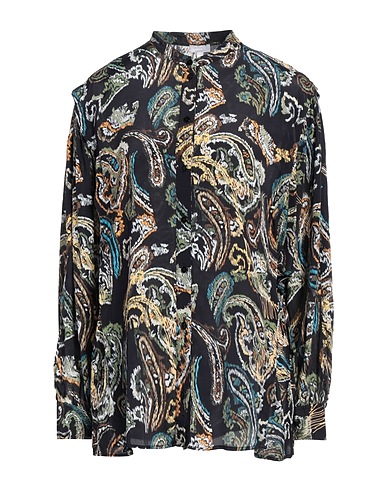 shirt, satin, paisley-print, no appliqués, mandarin collar, long sleeves, button fastenings, dry clean, do not bleach, do not tumble dry