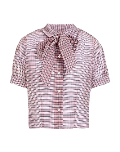 bow shirt, organza, tartan pattern, detachable application, brand logo, short sleeves, button fastenings, contains non-textile parts of animal origin, dry clean, do not bleach, do not tumble dry