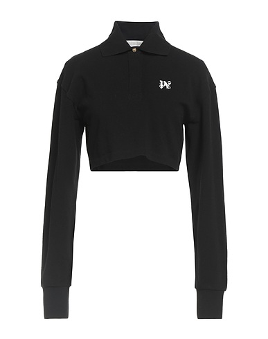 piqué, plain colour, embroidered logo, cropped, polo collar, long sleeves, concealed button fastenings, contains non-textile parts of animal origin, machine wash or dry clean, do not bleach, do not tumble dry
