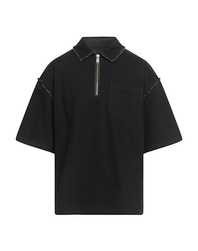 denim, mesh fabric, distressed, two-tone, brand logo, half-zip neckline, short sleeves, one chest pocket, machine wash or dry clean, do not bleach, do not tumble dry