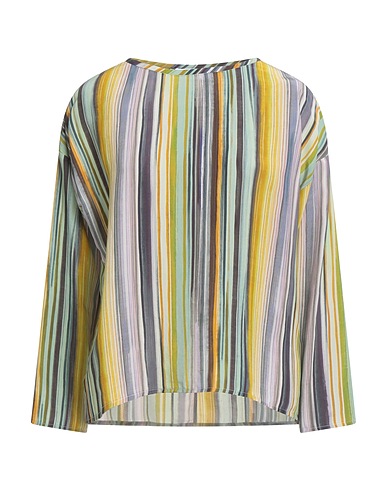 top, crepe, striped, no appliqués, crewneck, long sleeves, hand wash or dry clean, do not bleach, do not tumble dry, this brand runs large