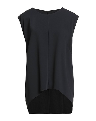 top, crepe, plain colour, no appliqués, crewneck, short sleeves, asymmetric hem, dry clean, do not bleach, do not tumble dry