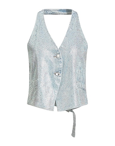 top, denim, iridescent, crystals, light wash, v-neck, sleeveless, fully lined, button fastenings, buckle fastening, faux pockets, hand wash, do not bleach, do not tumble dry, amp up the glamour with chic designer party outfits for your next event or fun night out
