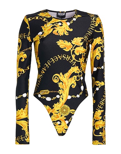 synthetic jersey, stretchy fabric, signature print, brand logo, crewneck, long sleeves, hook fastenings, hand wash or dry clean, do not bleach, do not tumble dry, this brand runs small