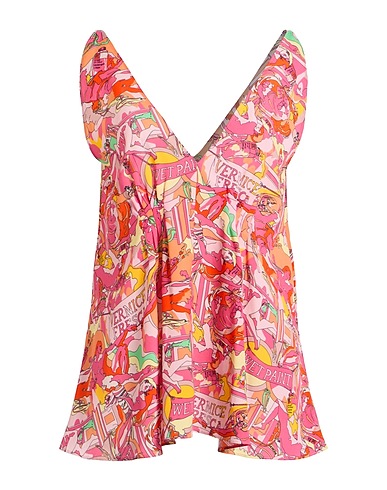 top, crepe, cartoon print, side seam stripes, deep neckline, sleeveless, machine wash, do not bleach, tumble dry