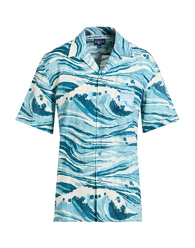 regular-fit shirt, linen, multicolour, brand logo, camp collar, short sleeves, button fastenings, one chest pocket, machine wash or dry clean, do not bleach, do not tumble dry