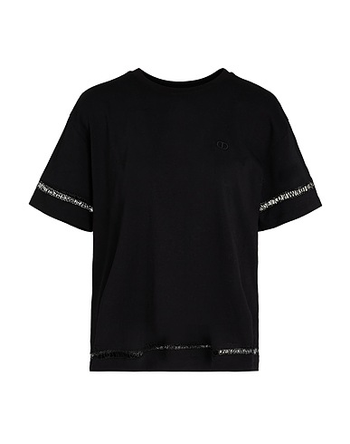 t-shirt, jersey, plain colour, lace trims, embroidered logo, crewneck, short sleeves, hand wash or dry clean, do not bleach, do not tumble dry