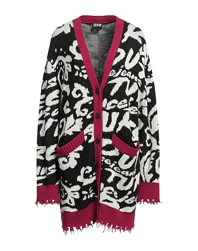 knitted, heavy-weight knit, no appliqués, multicolour, deep neckline, long sleeves, button fastenings, multipockets
