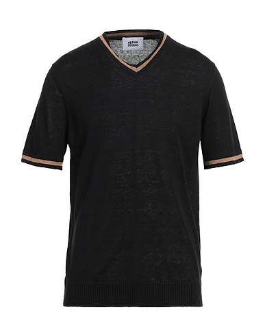 knitted, lightweight knit, no appliqués, two-tone, v-neck, short sleeves, no pockets