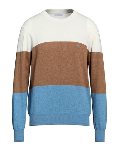knitted, lightweight knit, brand logo, striped, crewneck, long sleeves, hand wash or dry clean, do not bleach, do not tumble dry