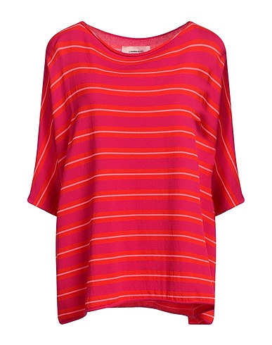 knitted, lightweight knit, striped, no appliqués, boat neckline, short sleeves, dry clean, do not bleach, do not tumble dry