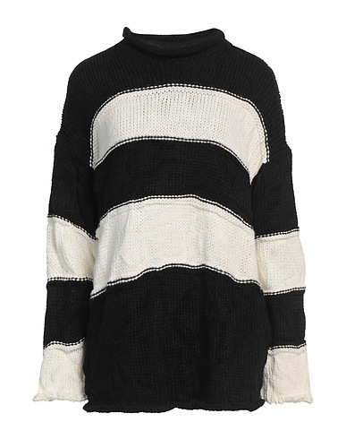 knitted, medium-weight knit, no appliqués, striped, mock neck, long sleeves, dry clean, do not bleach, do not tumble dry, do not iron
