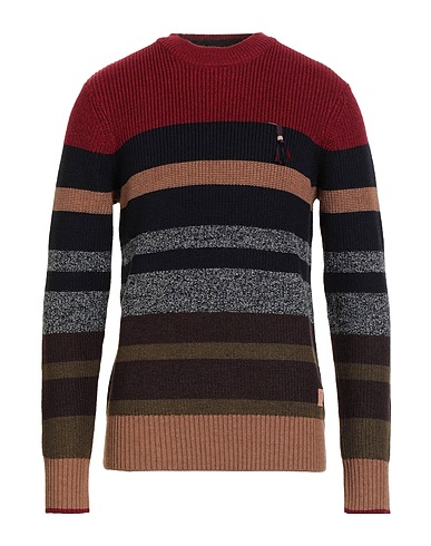 knitted, lightweight knit, multicolour, embroidered logo, brooch, mock neck, long sleeves, machine wash, do not bleach, do not tumble dry