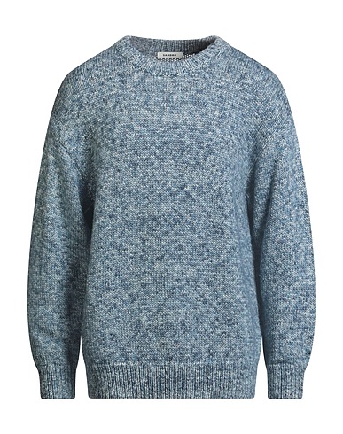 wool, mid-weight knit, no appliqués, mélange, crewneck, long sleeves, hand wash or dry clean, do not bleach, do not tumble dry