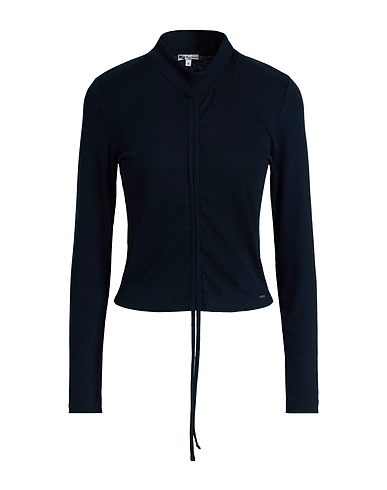 knitted, lightweight knit, stretchy fabric, brand logo, plain colour, v-neck, long sleeves, drawstring hem, machine wash, do not bleach, do not tumble dry