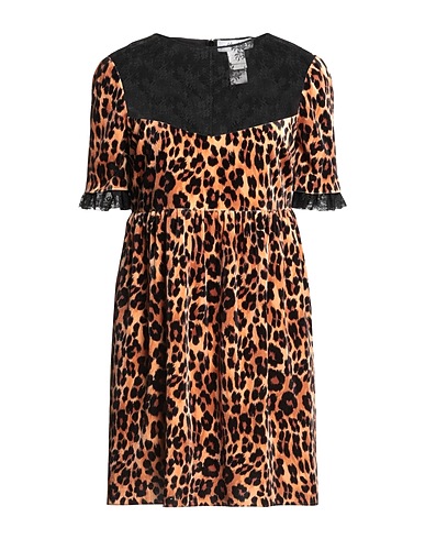 lace, chenille, no appliqués, leopard-print, round collar, short sleeves, fully lined, zipper closure, no pockets, stretch, trapeze style