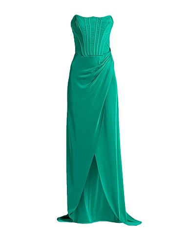 gown, jersey, stretchy fabric, plain colour, brand logo, draped, strapless, sleeveless, internal boning, zip fastening, front slit, dry clean, do not bleach, do not tumble dry, amp up the glamour with chic designer party outfits for your next event or fun night out