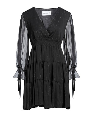 chiffon, lamé, no appliqués, stripes, deep neckline, long sleeves, partially lined interior, no pockets, trapeze style