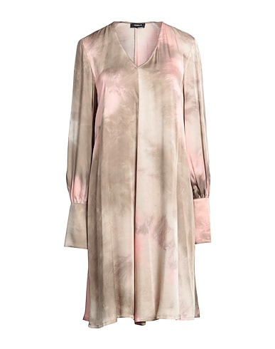 satin, no appliqués, multicolour pattern, v-neck, long sleeves, unlined, no pockets, trapeze style, small sized